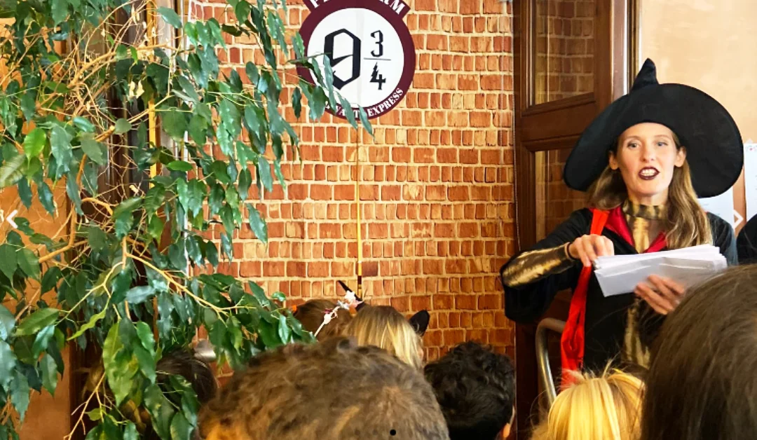 La professora i bruixa Cristinie de l’escola de màgia de Hogwarts posarà a prova tots els nens i nenes per saber quins són els escollits per per assistir al primer curs de l’escola més famosa del món. Entrarem en una classe de màgia travessant una paret com la de l’estació de trens 9 3/4 de la pel·lícula. Un cop a la classe, la professora Cristinie explicarà als alumnes tot el que cal saber sobre l’escola, anècdotes, històries misterioses… Posarem a prova les nostres dots de bruixes i bruixots fent encanteris, pòcimes i molt més!